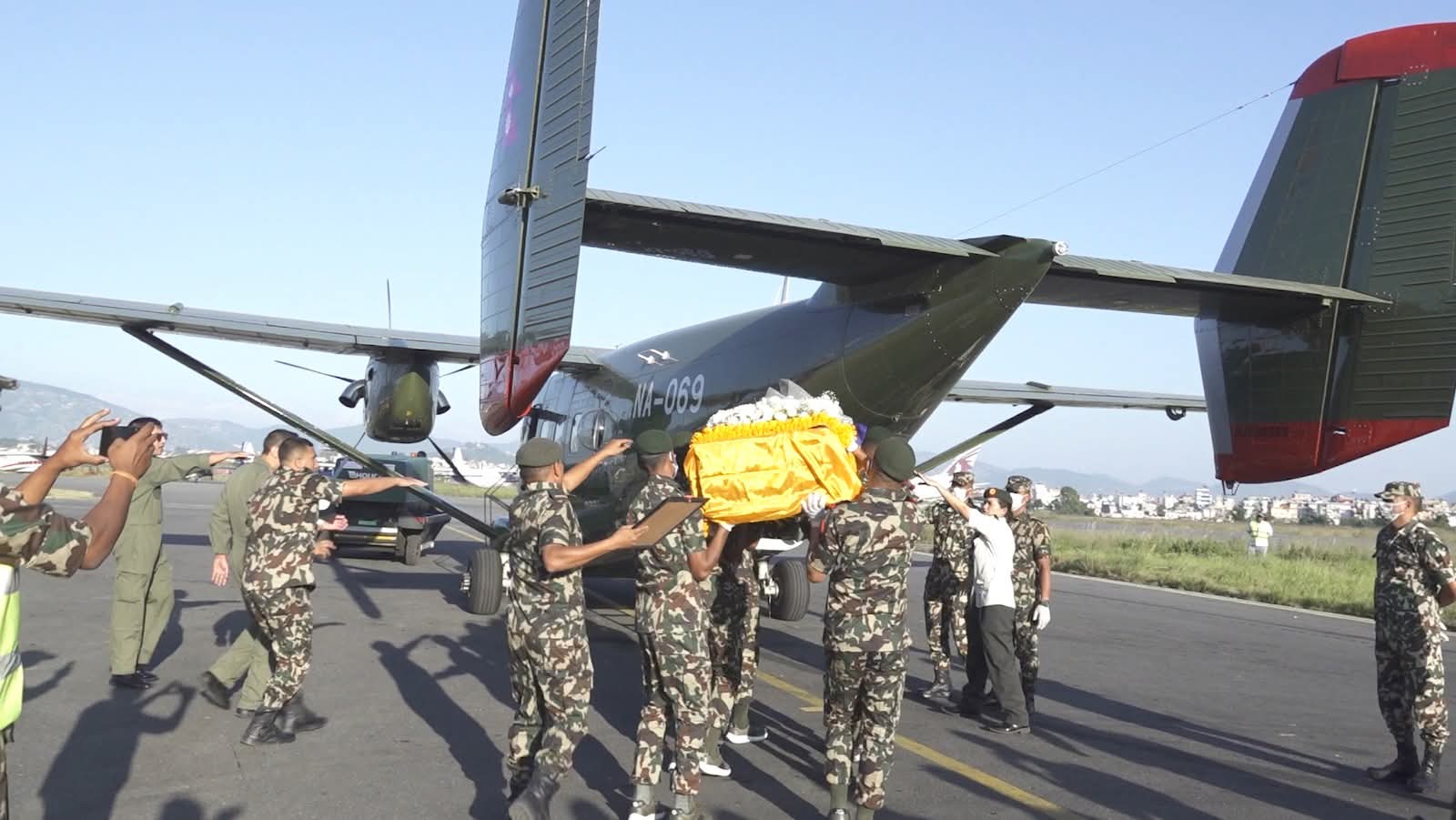 काठमाडौं । विपिन जोशीको पार्थिव शरीर आज अपराह्न इजरायलबाट काठमाडौँ ल्याइएको छ । त्रिभुवन अन्तरराष्ट्रिय विमानस्थलमा आयोजित शोकसभामा प्रधानमन्त्री सुशीला कार्कीले स्व जोशीप्रति श्रद्धाञ्जली अर्पण गर्दै उहाँको आत्माको चिरशान्तिको कामना गर्नुभयो ।