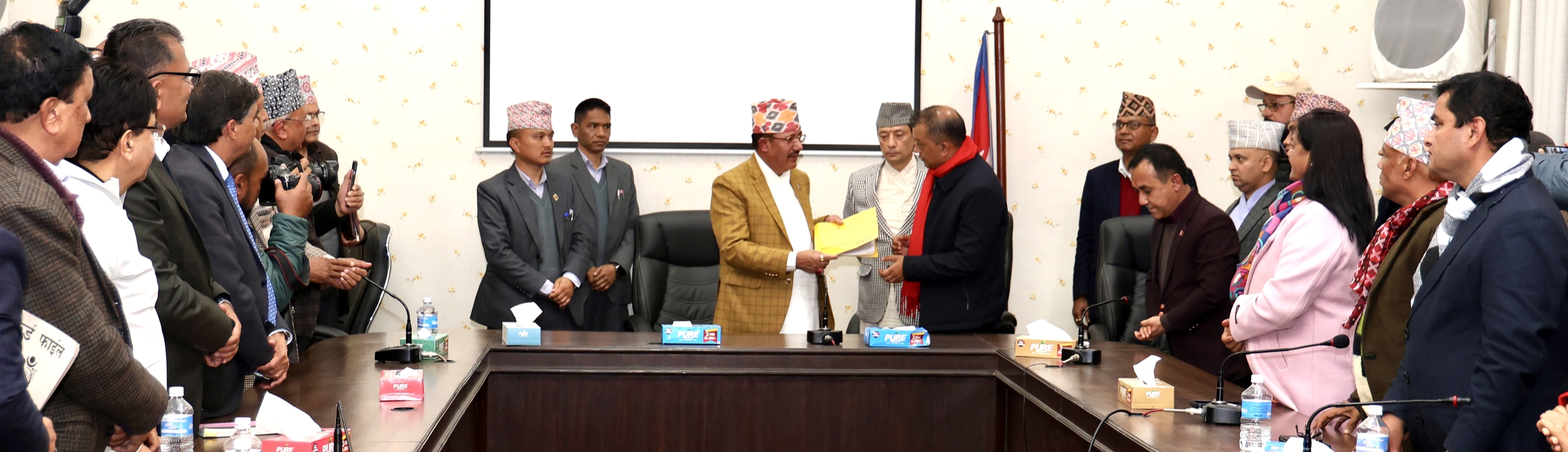 सभापति थापाले आयोगका कार्यवाहक प्रमुख आयुक्त रामप्रसाद भण्डारीलाई दोस्रो विशेष महाधिवेशनबाट पारित भएका नीति तथा कार्यक्रमलगायत दस्तावेज र नव निर्वाचित केन्द्रीय कार्य समितिको विवरणलगायत कागजात पेस गर्नुभएको थियो ।