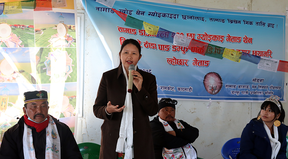 कार्यक्रममा बागमती प्रदेशसभाका उपसभामुख राधिका तामाङले पार्क स्थलको अबलोकन गर्नुका साथै कार्यन्वयका लागि सबै पक्ष जिम्मेवार भएर लाग्न आग्रह गर्नु भयो । तामाङ समूदायको पहिचान झल्किने डम्फु पार्क नेपाल र नेपालीकै लागि गौरब योग्य सम्पदा हुने र महत्वपूर्ण पर्यटकीय गन्तव्य बन्ने हुँदा सबै जाति र राजनीतिक पार्टीका नागरिकले सहकार्य गरी समयमा सम्पन्न गर्नु पर्ने उपसभामुख तामाङले बताउनु भयो ।