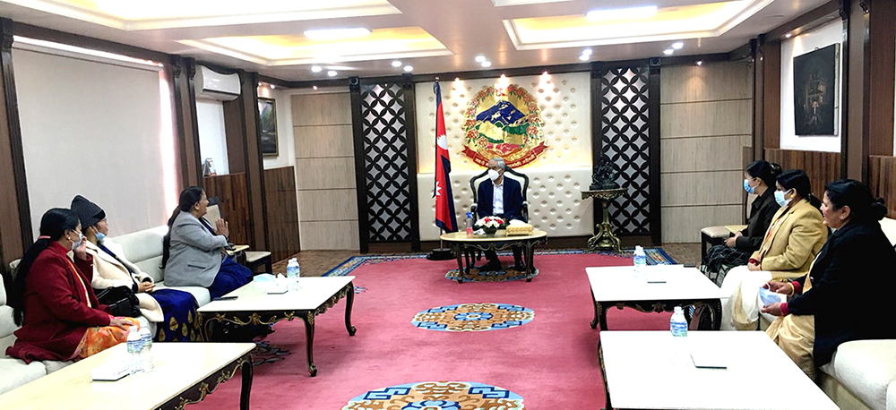 काठमाडौं । राष्ट्रियसभाका उपाध्यक्ष शशिकला दाहाल र छवटा प्रदेशसभाका उपसमामुखहरुले राष्ट्रपति विद्यादेवी भण्डारी र प्रधानमन्त्री शेरबहादुर देउवालाई भेटेर संविधानले व्यवस्था गरेको लैङ्गिक समावेशीकरणको सिद्धान्तलाई लागू गर्न आग्रह गर्नुभएको छ ।